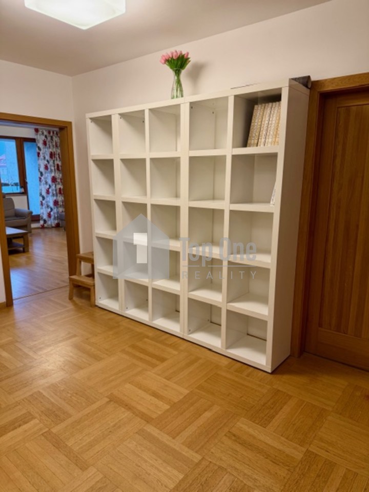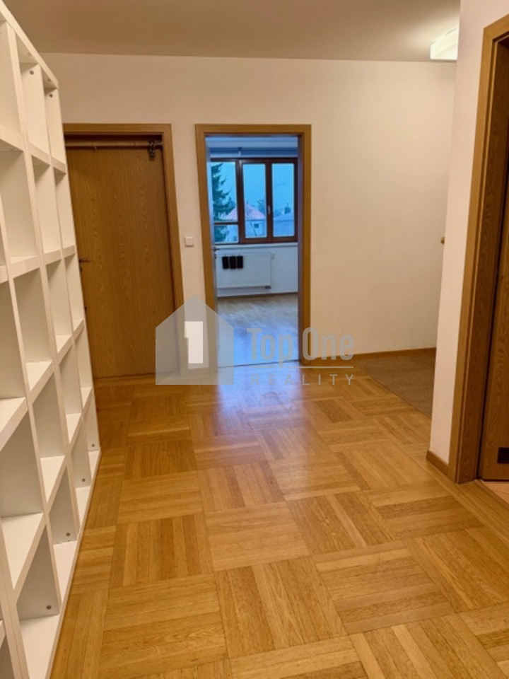 moderní, prostorný částečně zařízený byt o dispozici 4+kk o celkové obytné ploše 100 m2, který se nachází v centru Roztok na Tyršově náměstí.